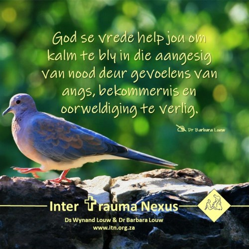 My gebed. Vader, ek het die heeltyd U vrede nodig. Dankie dat Jesus gesê het Hy gee ons Sy vrede en ek weet Sy vrede oortref alle verstand. Here Jesus, dankie vir die prys wat U betaal het om ons vrede en die ewige lewe te gee. U is my Verlosser. Leer my om U vrede en hoop te deel waar ek ook al gaan. My hart loop oor van dankbaarheid vir u liefde en genade. Amen.