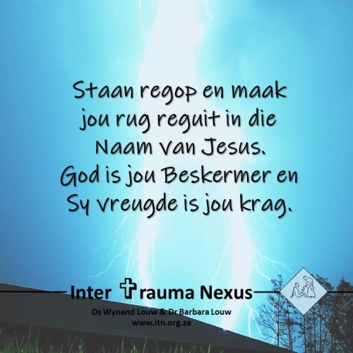 Die lewe is vol geleenthede van alle soorte. As jy op die voorpunt leef om 'n positiewe verskil te maak, moet jy weet dat jou rug is teen skelm aanvalle van die vyand beskerm. Die aanvalle tap ons energie en dreineer ons lewenskrag as gevolg van gevoelens van teleurstelling, ontnugtering en hartseer. Staan regop en maak jou rug reguit in die Naam van Jesus. God is my Beskermer en Sy vreugde is my krag. Wanneer ek Sy Woord volg, is Hy my Skild, my oorvloedige vergoeding en my beloning sal buitengewoon groot wees (Gen. 15:1).